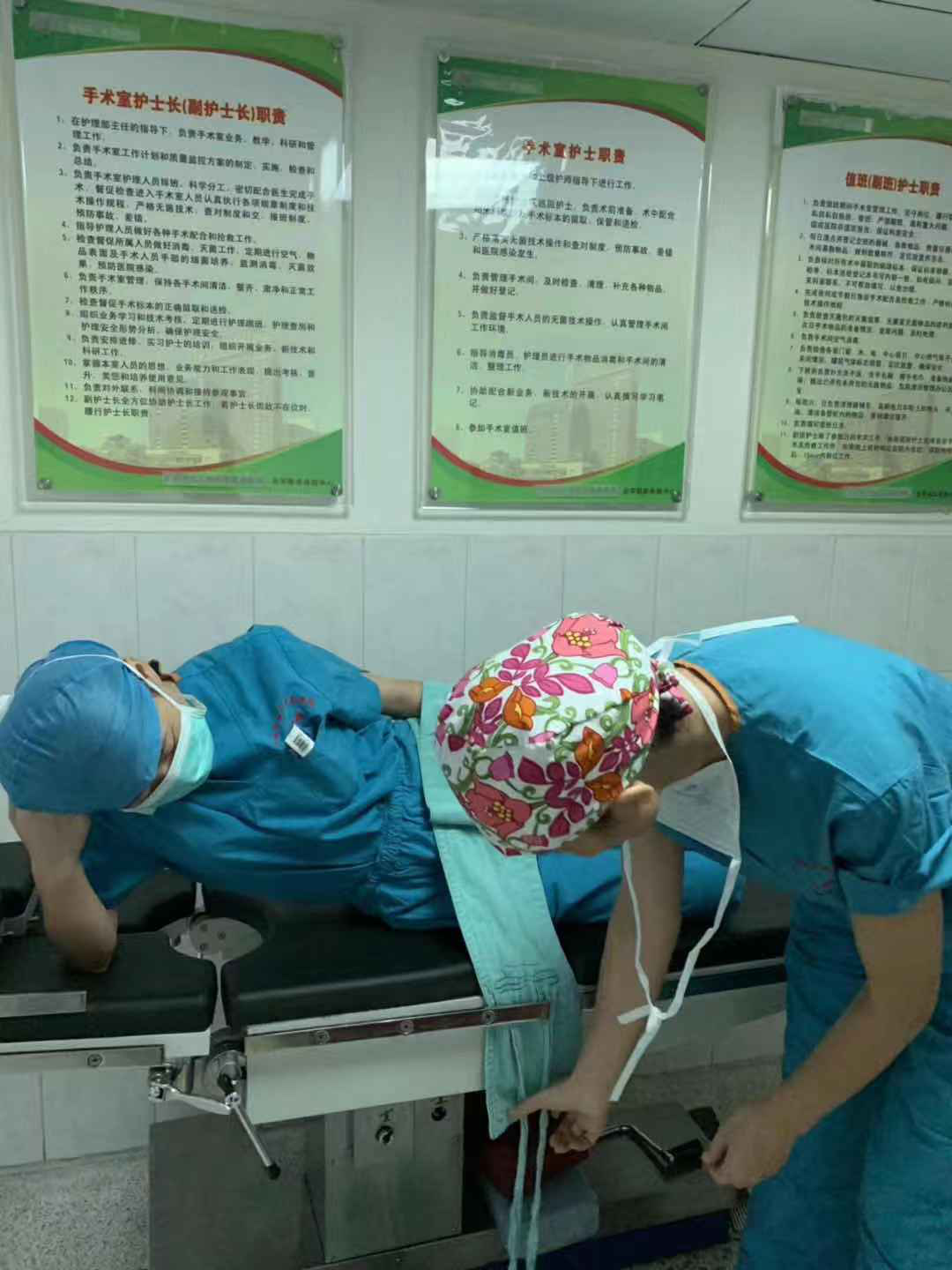 蒙泰護理手術室護理項目組小伙伴小宇應約來到廣州一家三甲醫院手術室,手術室護理專家魏護長與她的助理小夏老師利用休息時間,一起認真探討上肢手術固定帶款式,小夏老師躺在手術床上體驗,魏護長實操,確定現用樣品款式的固定帶尺寸需要加長多少,寬度正好合適等。小宇在一旁仔細做好筆記,答應護長盡快把樣品做出來后在臨床試用。